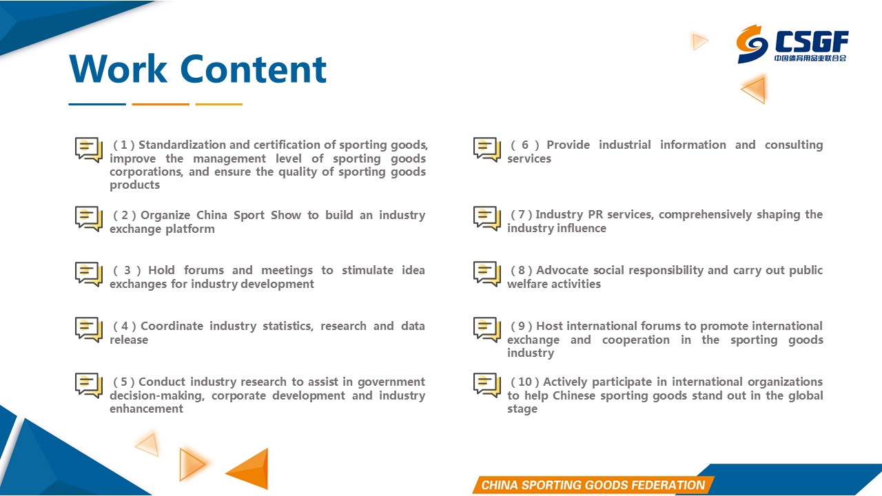 *Host international forums to promote international exchange and cooperation in the sporting goods industry