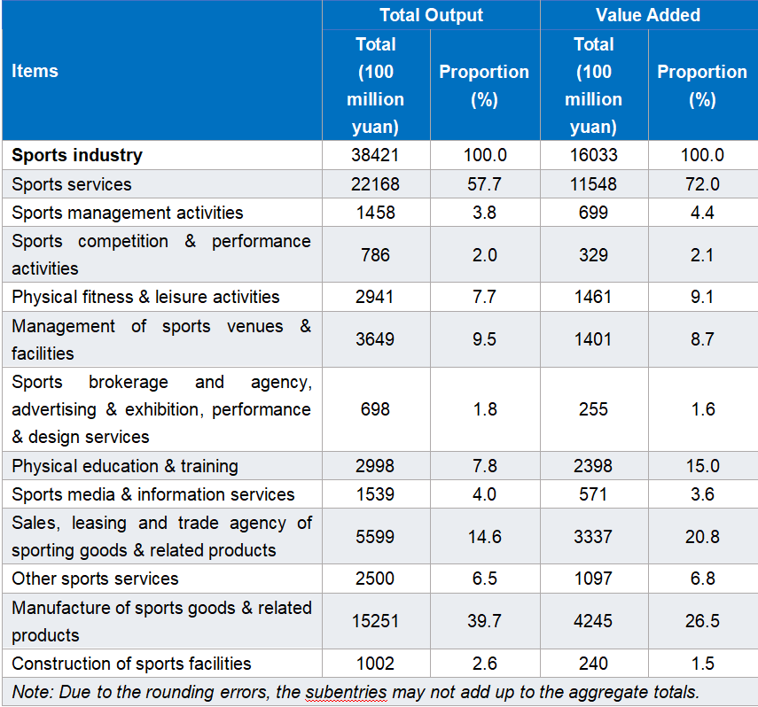 The National Bureau of Statistics of China and the General Administration of Sport of China jointly released the total output and added value of the national sports industry in 2024.
